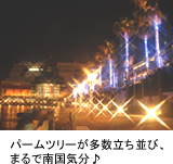 「オズパークのパームツリー」には、1本につき約600〜800球以上のLEDがつけられていて、なんともまぁ幻想的だったし、「潮風のステージ前」では、ITM棟とオズ棟の連絡通路の柱に光の川が流れてる!