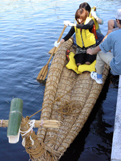 大人が10人がかりで運ぶ程大きな葦船。