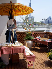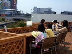 アーバンビュー咲洲カナリアルタウン・マンションパビリオン内のウッドデッキ・テラスで、4月5日限定オープンしていた「サキドリカフェ」。