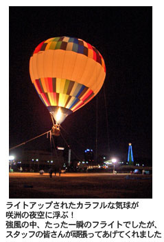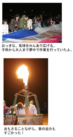 この熱気球は、23日の18時〜、24日の7時〜、18時〜と、計3回の試乗体験を実施したんだって!