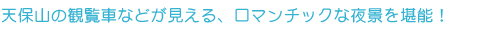 ここから眺める天保山から北港方面は、夜景が本当にキレイ。